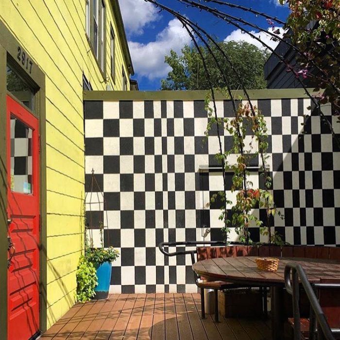 Besides the sidewalk seating, Galactic Pizza also has a side patio area. The vibrant checkerboard wall will make you feel like you’re in an optical illusion.